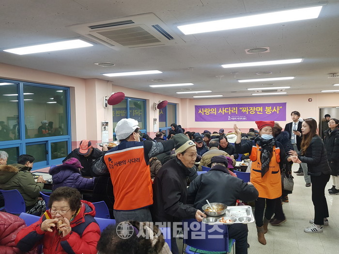 [대전=세계타임즈 이장성 기자] 다양하고 꾸준한 봉사로 따뜻한 이웃사랑을 전하는 6천명 봉사단체 사랑의 사다리 밴드(리더 이정제)는 12일 오전10시부터 대전시 동구 용운종합사회복지관(관장 강태인)에서 250분의 어르신들께 위문공연, 바베큐 통닭, 자장면 등을 대접하면서 구정명절을 앞두고 사회적 효행을 실천하였다.