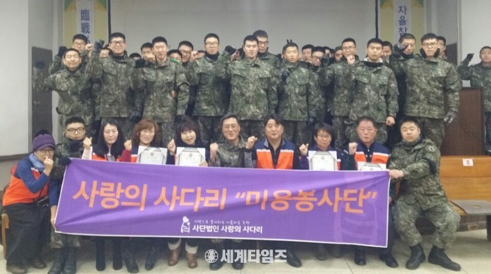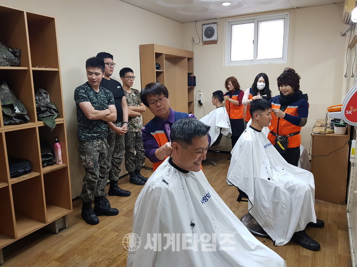 [대전=세계타임즈 이장성 기자] 6천명의 회원들이 활동하고 있는 SNS 봉사단체인 사랑의 사다리 밴드(리더 이정제)는 18일 오전10시~오후1시 육군 제32사단대덕대대(대대장 박종림)에서 군 장병들에게 미용봉사로 따뜻한 이웃사랑을 전했다.