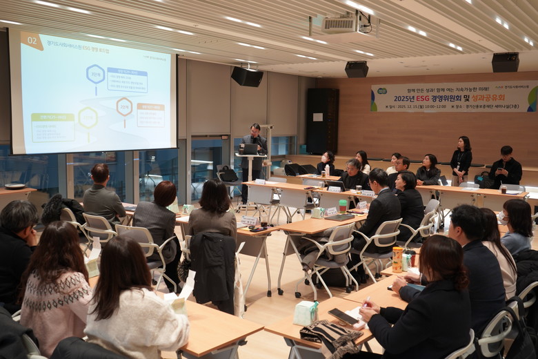 | ▲경기도사회서비스원 2025년 ESG 성과공유회가 진행 중이다.(사진=경기도사회서비스원) |