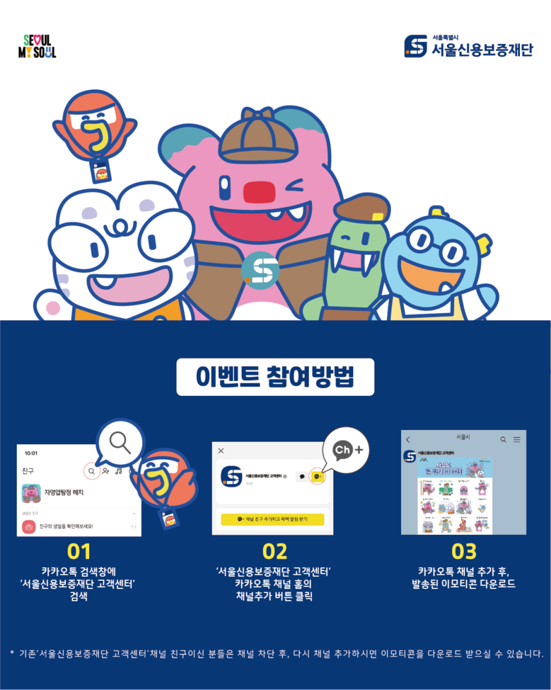 참여 방법도 간단하다. 카카오톡 앱을 실행해 오른쪽 상단 검색창에 ‘서울신용보증재단 고객센터’를 입력한 뒤 ‘채널 추가’ 버튼을 누르면 된다. 단, 준비된 수량 소진 시 조기 마감될 수 있어 빠른 참여가 필요하다.