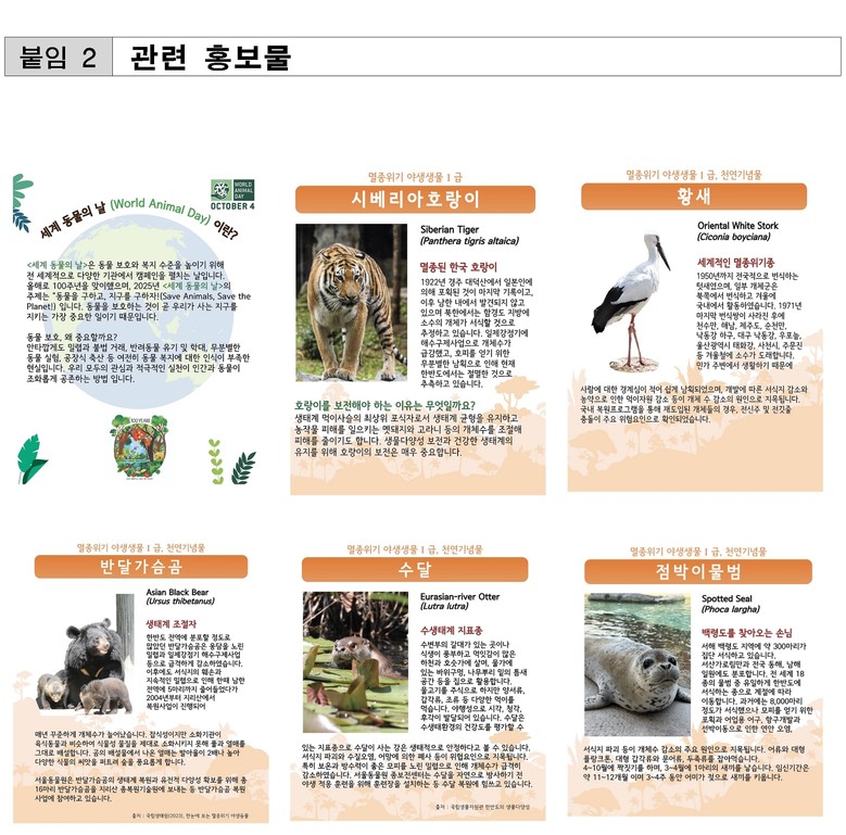 - 현장교육은 10.2(목)~10.4(토)까지 동물원 정문에서 방문객 대상으로 운영