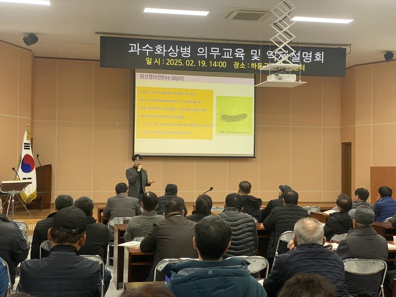 [하동군 세계타임즈=최성룡 기자] 하동군은 지난 19일 농업기술센터에서 배·사과 재배 농가 96개소를 대상으로 과수화상병 예방 및 관리법 교육을 진행했다고 밝혔다. 이는 과수화상병의 화산을 막고 농업 생산성을 보호하기 위함이다.