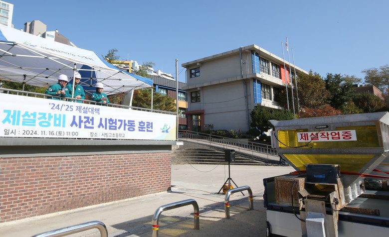 | ▲ 용산구가 2024년 본격적인 겨울을 앞두고 제설장비 가동 훈련을 하고 있는 모습. |