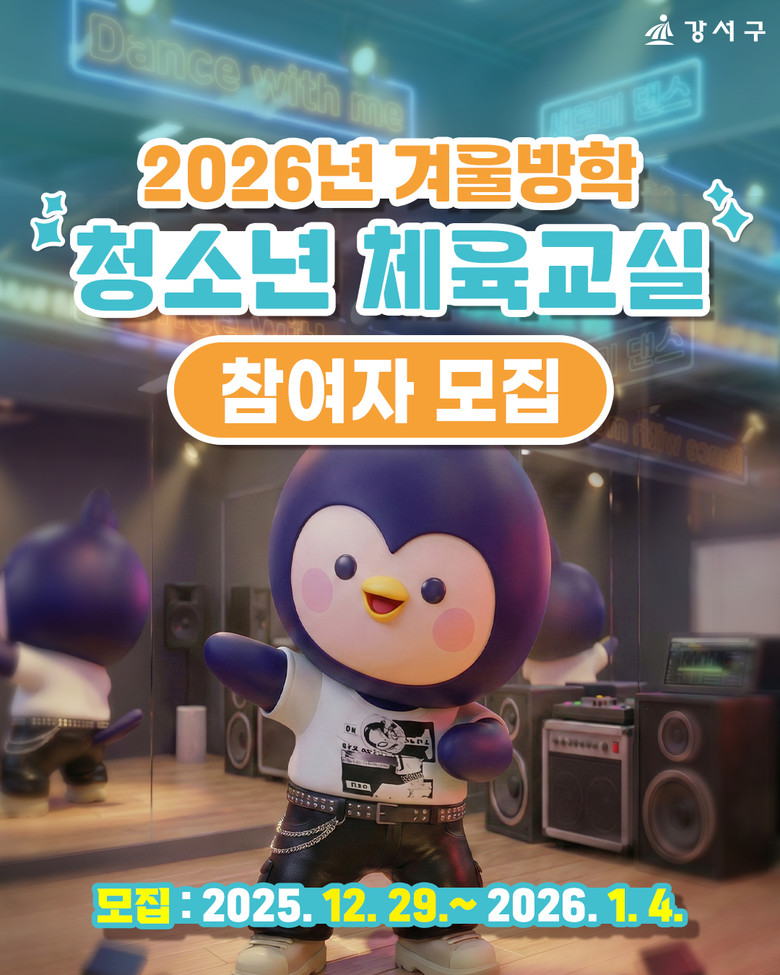 모집 인원은 관내 초·중·고등학생 135명으로, 신청은 오는 12월 29일(월) 오전 9시부터 2026년 1월 4일(일) 오후 6시까지 강서구 공공체육시설 누리집(sports.gangseo.seoul.kr)를 통해 온라인으로 가능하다.