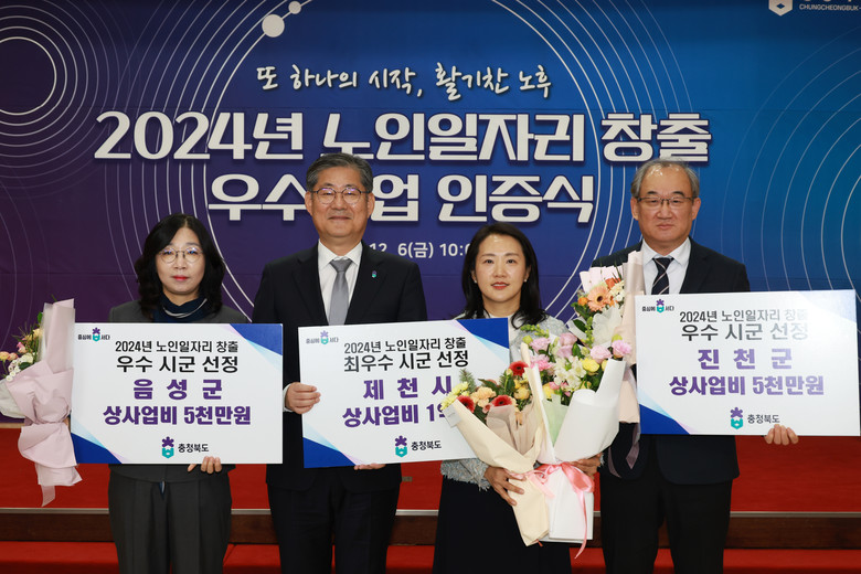 또한, 우수 시군으로 제천시(최우수), 진천군, 음성군(우수)이 선정되어 기관 표창을 받았으며, 노인일자리 창출을 헌신한 유공자 6명(공무원 3명, 민간인 3명)도 도지사 표창을 수여받았다.