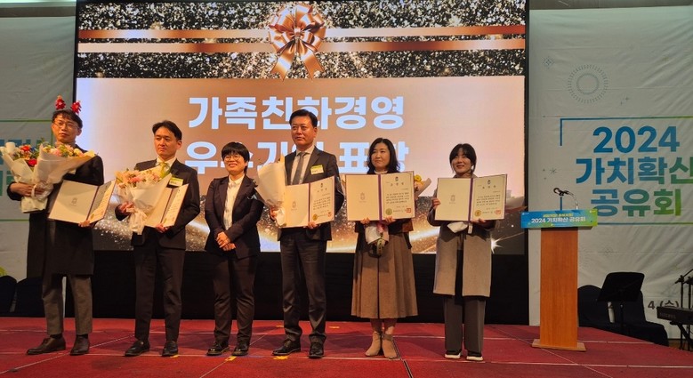 가족 친화 우수기업으로 김안과의원(대표 김두은), 디자인펜슬(대표 오미순), 부강이엔에스㈜(대표 박규식), ㈜사옹원(대표 이상규), ㈜풍림푸드(대표 정연현)가 선정됐다.