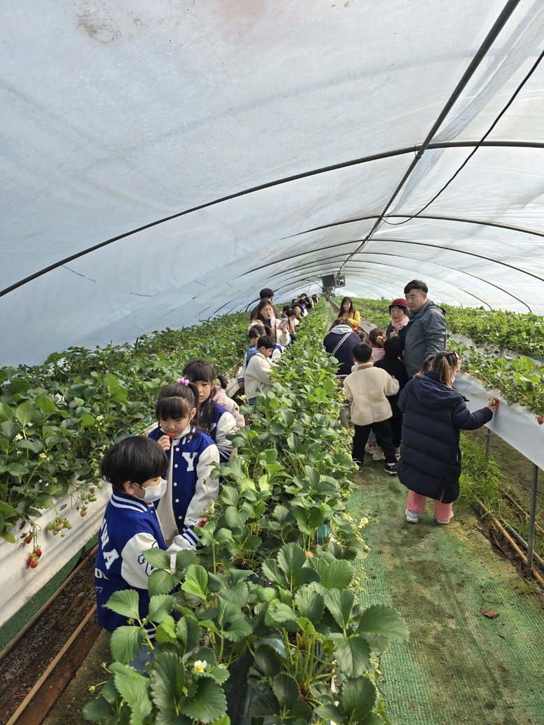 [논산시 세계타임즈=백택기 기자] 이화초등학교(교장 전승택)는 지난 21일(목) 유치원, 1~6학년 학생들이 광석면에 있는 딸기농장에서 지역 특산물인 딸기 따기 체험을 했다고 전했다.