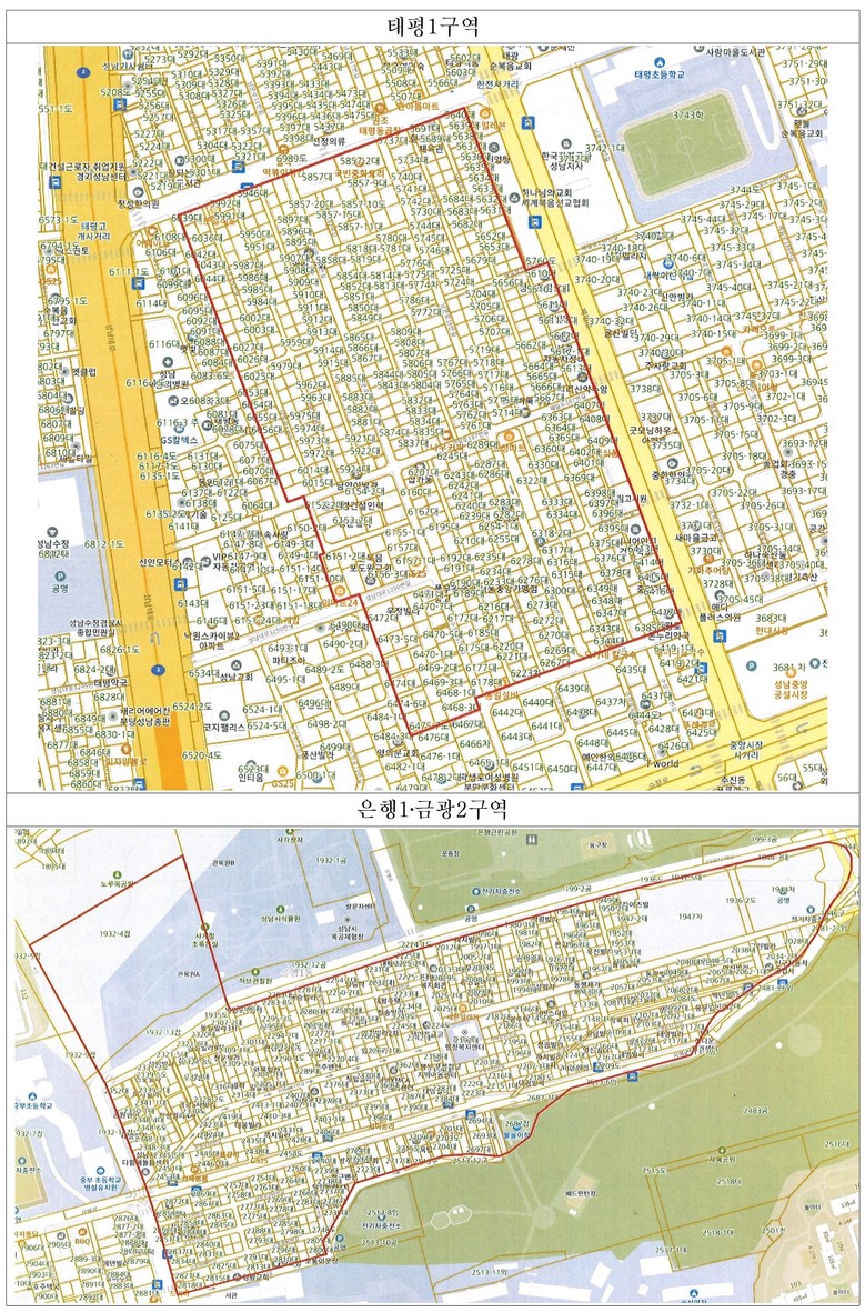 [성남시 세계타임즈=송민수 기자] 성남시(시장 신상진)는 태평1구역과 은행1·금광2구역에 대한 재개발 사업을 본격 추진한다고 8일 밝혔다. 시는 지난달 ‘2030 성남시 도시·주거환경정비기본계획(변경)’에 따라 생활권 재개발사업 후보지로 선정된 두 개 구역을 대상으로 정비계획 수립과 정비구역 지정을 위한 용역에 착수했다.