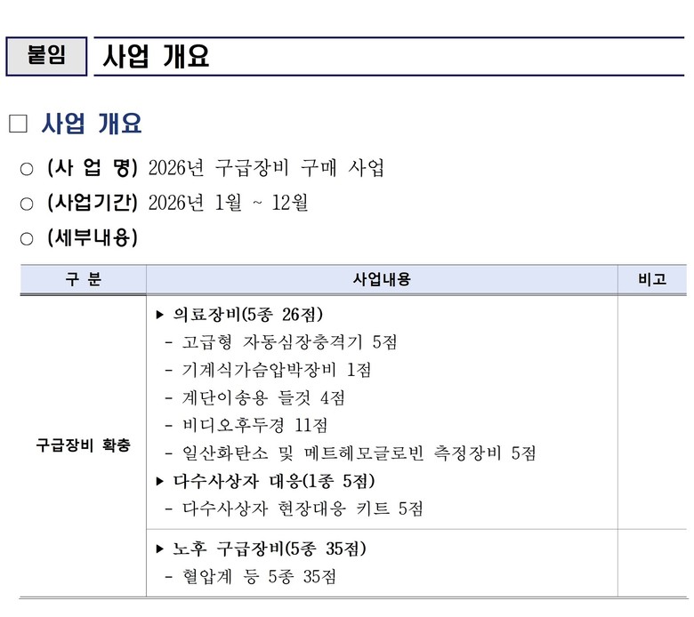 특히 단순한 노후 장비 교체를 넘어, 급변하는 응급의료 환경에 대응하고 응급환자 생존율을 높이기 위해 최신 기술이 적용된 고성능 장비 도입에 중점을 두고 있다. 이를 통해 현장 대원의 대응 효율성과 시민 체감 안전도를 동시에 강화할 방침이다.