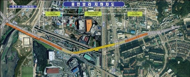 이 사업은 기흥구 보라택지개발지구 광역교통개선대책에 따라 교통혼잡 주요 지점인 하갈동과 보라동 일대의 총길이 1.65㎞ 구간 가운데 940m(양방향 4차로) 길이의 지하차도를 신설하는 공사다.