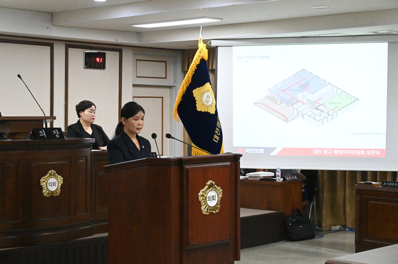 [중구 세계타임즈=이채봉 기자] 대전 중구의회(의장 오은규) 오한숙 의원은 20일 제267회 정례회 제3차 본회의에서 영유아 정책 확대 및 복지 기반 강화 필요성에 관한 구정질문에 나섰다.