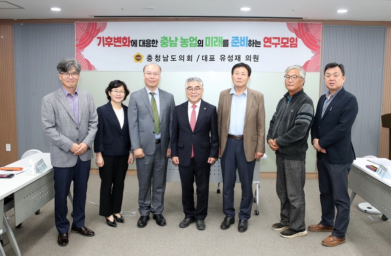 이번 회의는 연구모임 대표인 유성재 의원(천안5‧국민의힘)이 좌장을 맡았으며, 김성환 단국대 교수가 ‘기후변화에 대응한 충남 농업의 미래 준비 방안 연구’ 중간보고를 진행했다.