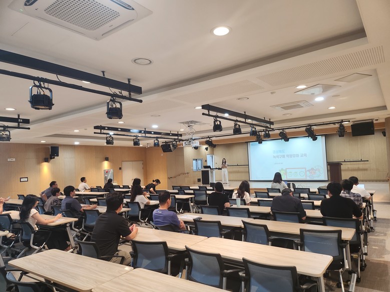 이번 교육은 한국환경산업기술원과 리셋컴퍼니(주)가 공동 주관했으며, 도 사업소 계약담당자와 시군 녹색제품 구매 실무자를 대상으로 녹색제품 의무구매 제도 개요, 구매방법, 실적 관리 방안, 구매 확대 전략 등을 중심으로 실제 업무에 도움이 될 수 있도록 실무 중심 내용과 사례를 폭넓게 소개했다.