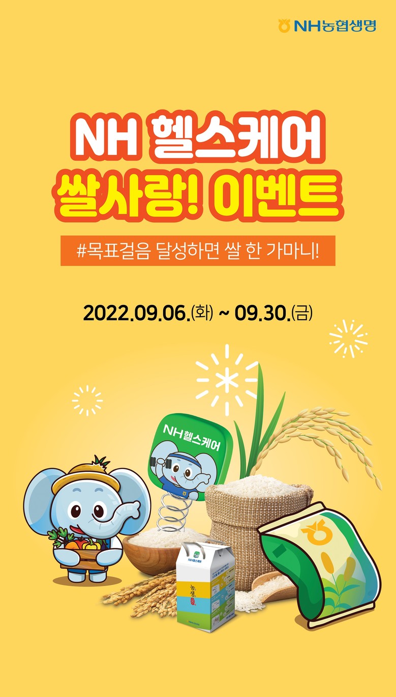 [세계타임즈 = 이송원 기자] NH농협생명이 9월 6일(화)부터 9월 30일(금)까지 총 25일간 디지털 헬스케어 플랫폼인 ‘NH헬스케어’에서 「쌀사랑! 이벤트」를 실시한다.