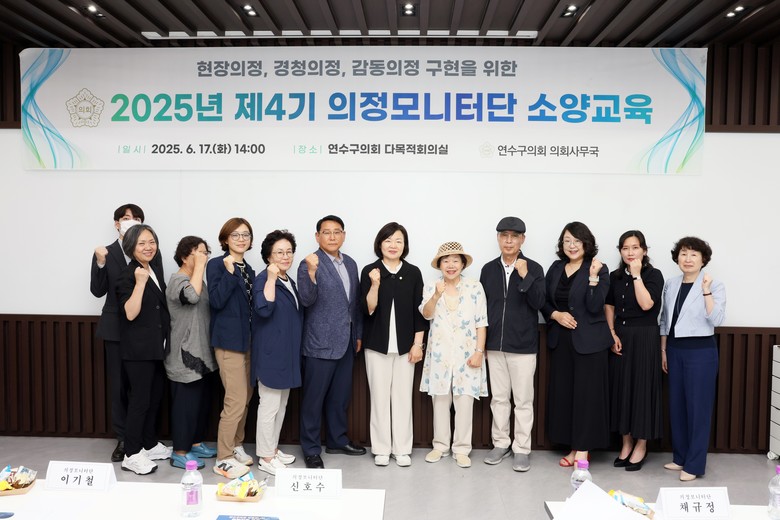 [연수구 세계타임즈=심하린 기자] 인천광역시 연수구의회(의장 박현주)는 17일 오후 2시 연수구의회 1층 다목적회의실에서 2025년 제4기 의정모니터단 소양교육을 실시하였다.