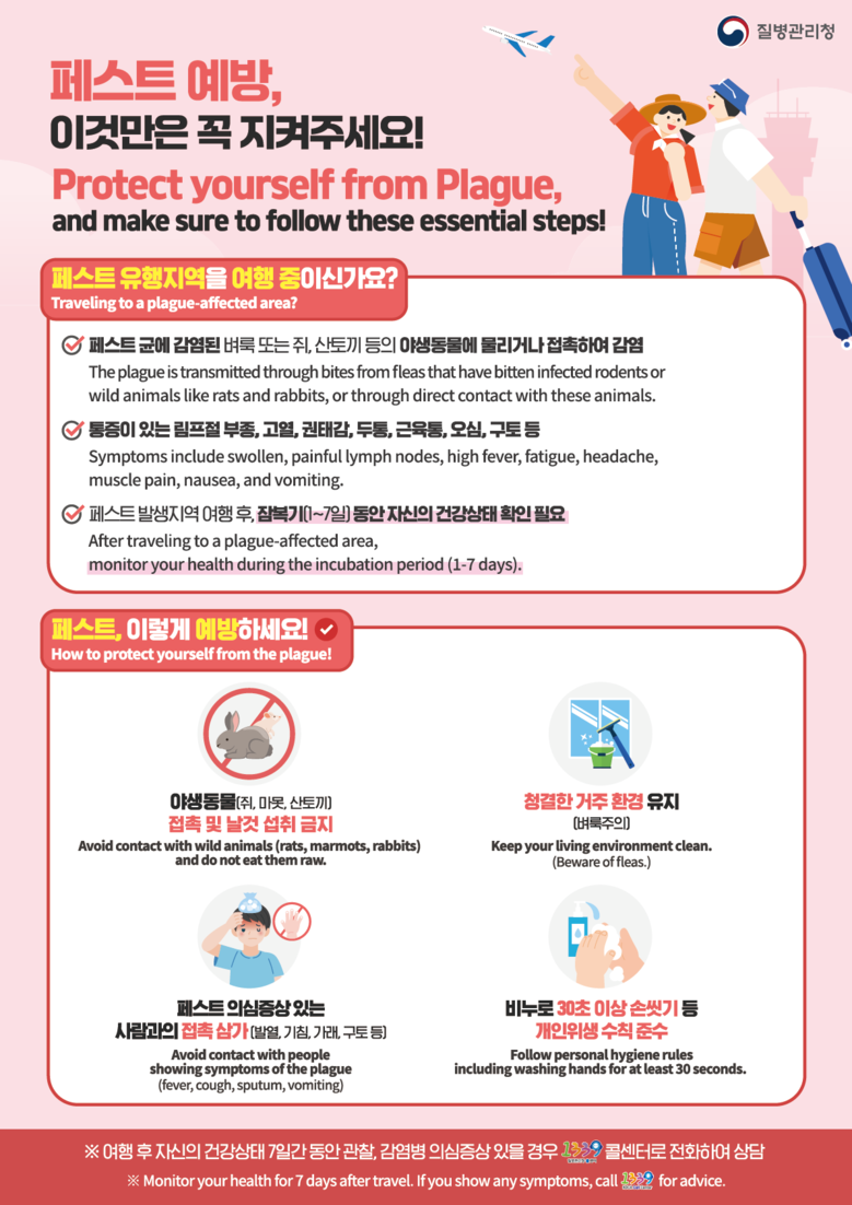 아울러, 일부 국가에서는 제1급감염병인 동물인플루엔자 인체감염증(AI), 중동호흡기증후군(MERS), 페스트 등이 유행 중이다.