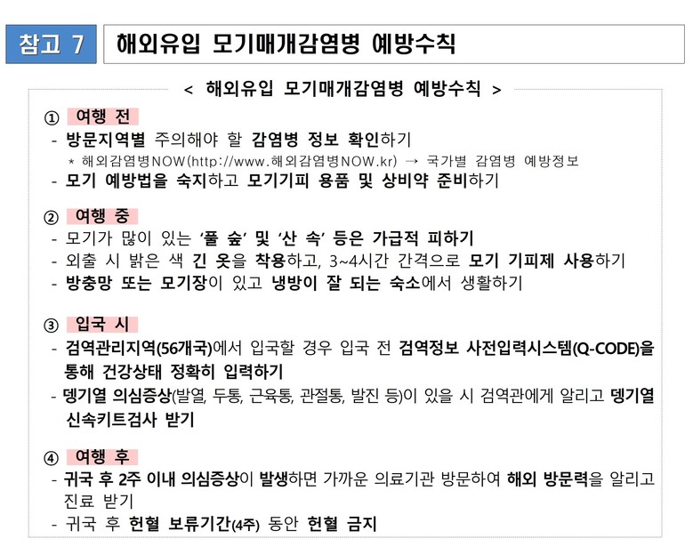 조규율 시 시민건강국장은 “여름 휴가철에는 해외여행이 증가함에 따라 해외 일부 국가에서 유행 중인 감염병에 노출될 위험이 크다”라며, “시민 여러분께서는 여행 전부터 귀국 후까지 전 과정에 걸쳐 감염병 예방수칙을 철저히 지켜주시고, 가족과 함께 건강하고 안전한 여름 휴가를 보내시길 바란다”라고 당부했다.