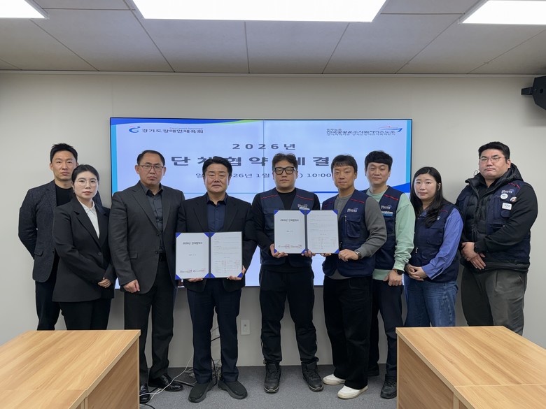 ▲2026년 경기도장애인체육회 단체협약 체결식.(사진=경기도장애인체육회)