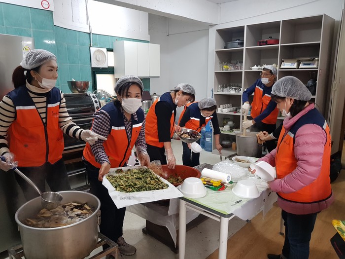 이날 삼계탕 봉사에는 유희자 단장을 비롯한 회원15명이 삼계탕, 닭죽, 묵무침, 부침개를 준비하여 50명의 발달장애인들에게 점심식사를 대접하였다.