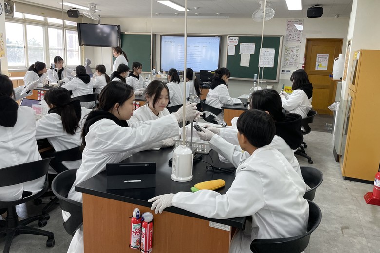 특히, 지난해 지능형 과학실을 구축하여 첨단 실험 환경을 구축하고 나아가 MBL 센서 기반 과학 실험 수업 확대를 위해 노력하고 있으며, 지능형 과학실 구축(대상)교를 대상으로 대외 공개 수업을 통해 관내 과학 교사들의 실험수업 역량 제고에 기여했다. 그 외에도 학생 주도의 과학 실험수업 정착을 위해 화랑 제도(화학 사랑 도우미제) 및 8개의 교내 과학 실험 동아리를 운영하고 있다.