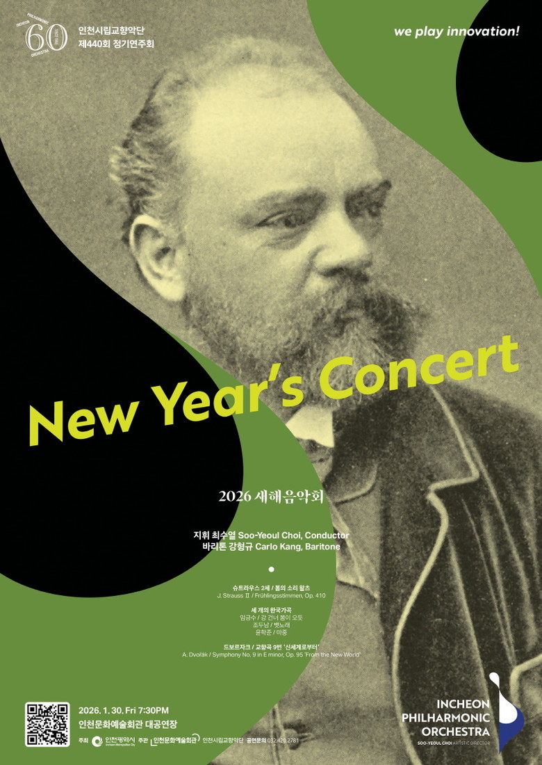 클래식 음악으로 희망찬 새해를 열어줄 인천시립교향악단 제440회 정기연주회 〈2026 새해음악회〉는 전석 1만 원이며, 인천문화예술회관 누리집과 엔티켓, NOL 티켓을 통해 예매할 수 있다.