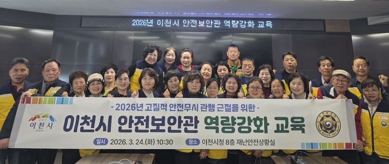 이번 교육은 이천시 안전보안관 역량강화 교육으로 ▲안전보안관의 임무와 역할 ▲안전신고로 인한 개선 사례 ▲봄철 재난안전 집중신고제 등 일상생활 속 7대 안전 무시 관행을 근절하고, 지역 안전 점검 및 신고 활동을 통해 안전 사각지대 해소를 위해 마련됐다.