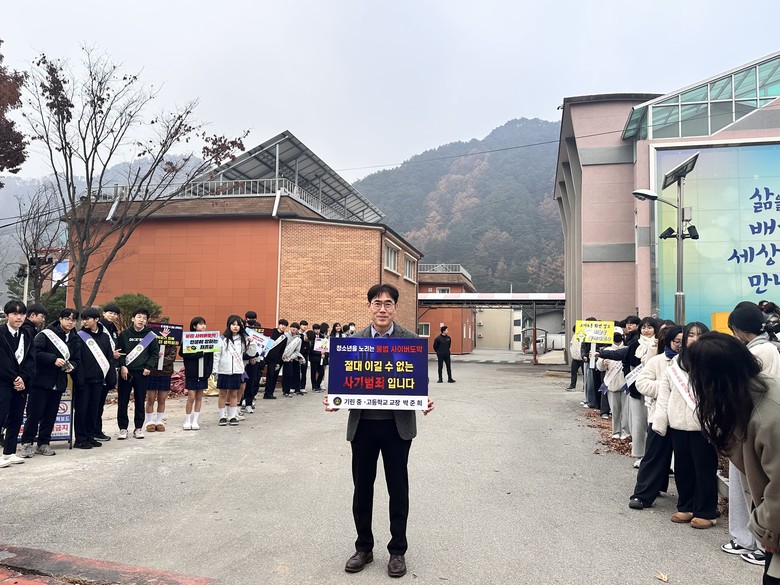 캠페인에는 박준희 교장을 비롯해 인제경찰서 여성청소년계 경찰, 교사, 학생자치회 학생 등 30여 명이 참여해 등굣길 학생들에게 학교 폭력과 불법 사이버 도박의 심각성을 알렸다.