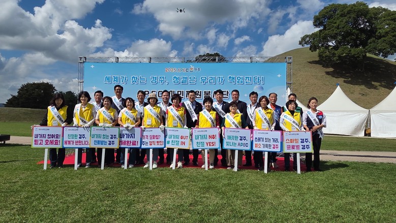 - 자원봉사자 참여...환경정비와 친절·미소·따뜻한 손길로 손님맞이 준비 한창 - [경북 세계타임즈=한윤석 기자] 경상북도와 경주시는 23일 경주 봉황대 잔디광장에서 ‘APEC 경주 손님맞이 새단장의 날’ 행사를 개최했다.