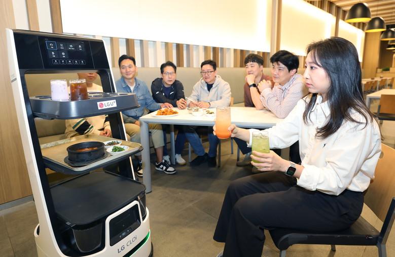 U+서빙로봇은 LG전자 로봇 클로이(CLOi)를 활용해 매장 운영효율을 높이고, 소상공인과 요식업 점주 등 소호(SOHO) 고객 경험혁신을 위해 출시한 서비스다. 경로를 설정해두면 클로이 로봇이 AI와 카메라로 장애물을 피해 음식과 물건을 안전하게 배송한다.