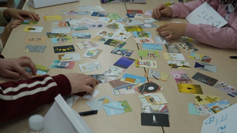 | ▲ 인천시청년미래센터 사회성 워크숍에 참여한 청년들이 마음 카드를 살피고 있다. |
