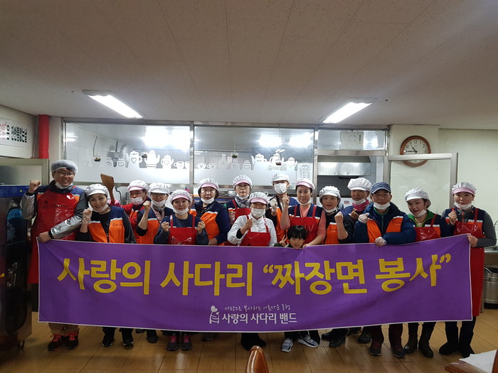 [대전=세계타임즈 이장성 기자] 대전시 SNS 봉사단체 사랑의 사다리 밴드(리더 이정제)는 16일 오전10시,동구 소제동에 위치한 자헤원(원장 양승연)에서 짜장면 봉사로 우리 사회의 따뜻한 사랑을 실천 하였다