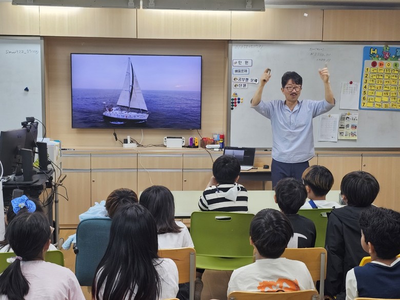 [파주시 세계타임즈=송민수 기자] 파주 적서초등학교(교장 박충호)는 2024년 5월 13일(월) <해양수산인재개발원> 2024 미래글로벌 해양수산 인재교육으로 해양 모험가 김승진 선장을 초청해 적서초 3~6학년 대상 해양환경 진로교육을 실시했다고 밝혔다.