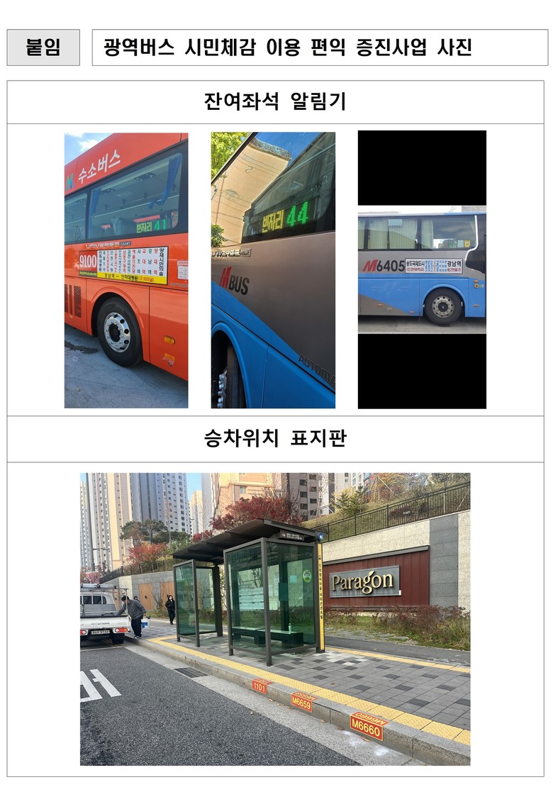 이번 사업은 시가 2024년 10월 광역버스 준공영제를 시행함에 따라 광역버스 이용 과정에서 제기된 시민 불편 사항을 우선적으로 해소하고, 대중교통 이용 만족도와 편의성을 높이기 위한 선도 사업으로 추진됐다.