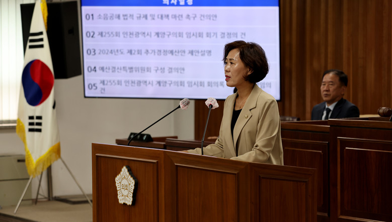 [계양구 세계타임즈=심하린 기자] 인천 계양구의회(의장 신정숙)는 지난 2일 제255회 임시회 1차 본회의에서 문미혜 의원이 대표 발의한 ‘소음공해 법적 규제 및 대책 마련 촉구건의안'을 만장일치로 채택했다.