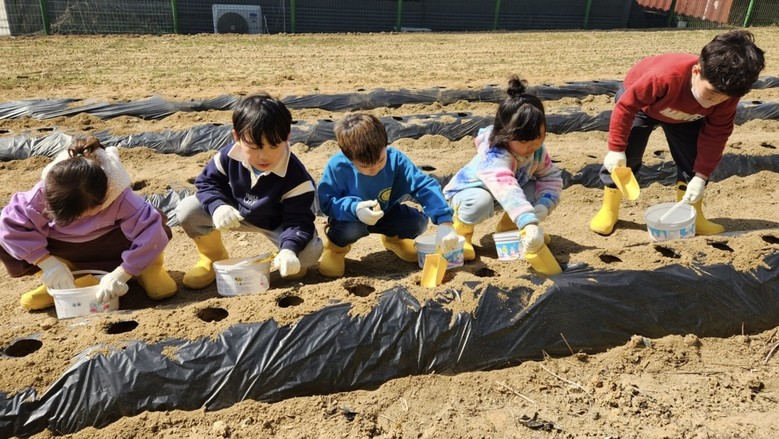 [아산시 세계타임즈=백택기 기자] 아산 흰돌유치원(원장 임지연)은 3월 14일(목)에 유치원 텃밭에서 감자 심기 체험활동을 진행하였다.