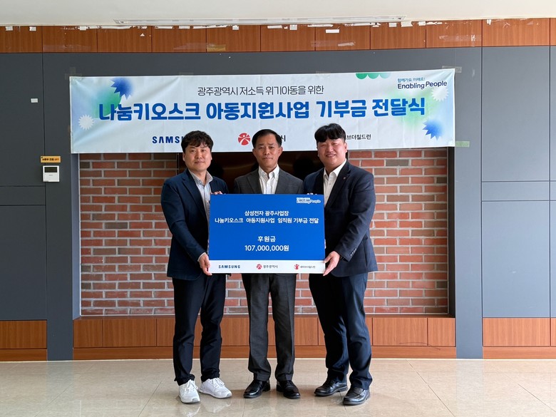 한편 삼성전자 광주사업장은 시설퇴소 자립준비청소년 지원을 위한 삼성 희망 디딤돌 지원, 재능나눔 봉사, 5월 나눔의달 나눔 캠페인, 물품 기부 등 다양한 사회공헌활동을 펼치고 있다.