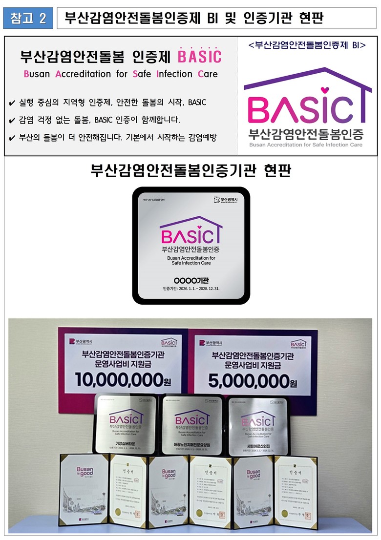 조규율 시 시민건강국장은 “부산감염안전돌봄인증제는 돌봄 현장의 감염관리 수준을 한 단계 끌어올리기 위한 전국 최초의 시도”라며, “우리시는 이번 인증을 통해 인증기관의 책임과 자긍심을 높이고, 감염병으로부터 안전한 돌봄 환경이 지역사회 전반에 확산하길 기대하며, 앞으로도 시민이 신뢰할 수 있는 건강한 감염안전돌봄 도시 부산을 만들어 가겠다”라고 전했다.