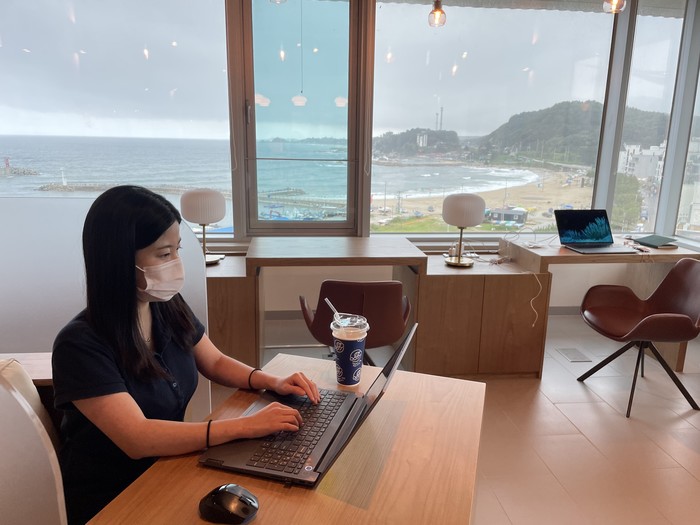 먼저 ‘서핑의 성지’로 떠오른 강원도 양양에 위치한 브리드호텔에서 동해바다를 보며 일 할 수 있다. 브리드호텔의 한 층 전부를 업무공간으로 사용한다. 루프탑가든이나 도서관 형태의 카페도 자유롭게 사용할 수 있다.