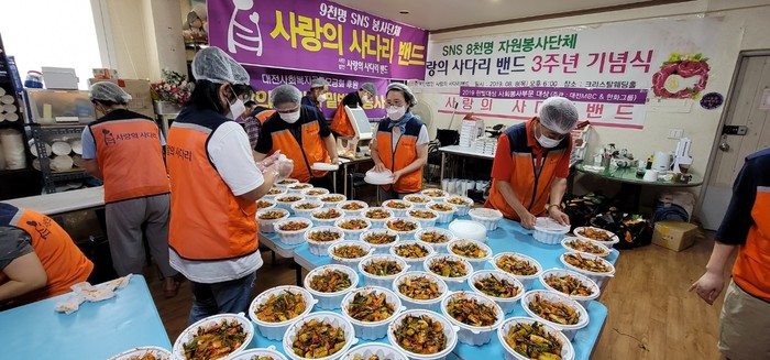 [대전=세계타임즈 이채봉 기자] 코로나19로 힘든 상황에서도 비대면 봉사로 다양한 봉사를 펼치고 있는 SNS 9천명 봉사단체 사단법인 사랑의 사다리 밴드(리더 이정제)는 지난 16일 오후1시, 서구 소외계층 52가정에 사랑의 밑반찬 봉사로 우리 사회의 따뜻한 사랑을 전달 하였다.