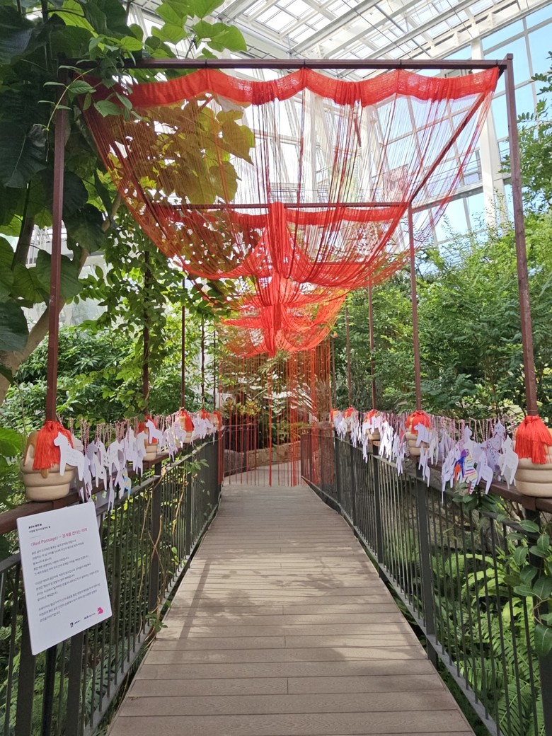 영흥수목원은 특별전시 ‘2026 꿈꾸는 말의 숲’을 선보인다. 전시온실 벽천에 설치된 ‘꿈꾸는 말’ 작품과 수공간 장식품, 양치식물 사이 말 장식 등으로 겨울 온실을 색다르게 연출했다. 큐알코드로 붉은 식물 정보를 확인할 수 있고, ‘나만의 달라호스(스웨덴 목각 말 인형) 만들기’ 체험 프로그램도 연계 운영한다.