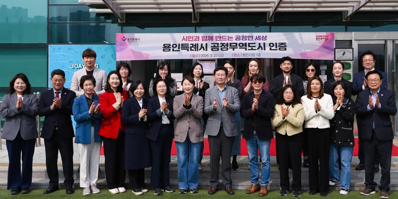 [용인시 세계타임즈=송민수 기자] 용인특례시(시장 이상일)는 27일 시청 1층 3번 출구 앞에서 공정무역도시 인증 현판 제막식을 개최했다.