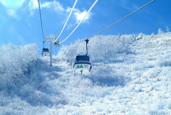 무주덕유산리조트 실크로드 코스는 덕유산 설천봉에서 내려오는 코스로 국내에서 가장 긴 6.1km 길이는 물론 장쾌한 설경 감상으로 유명하다.