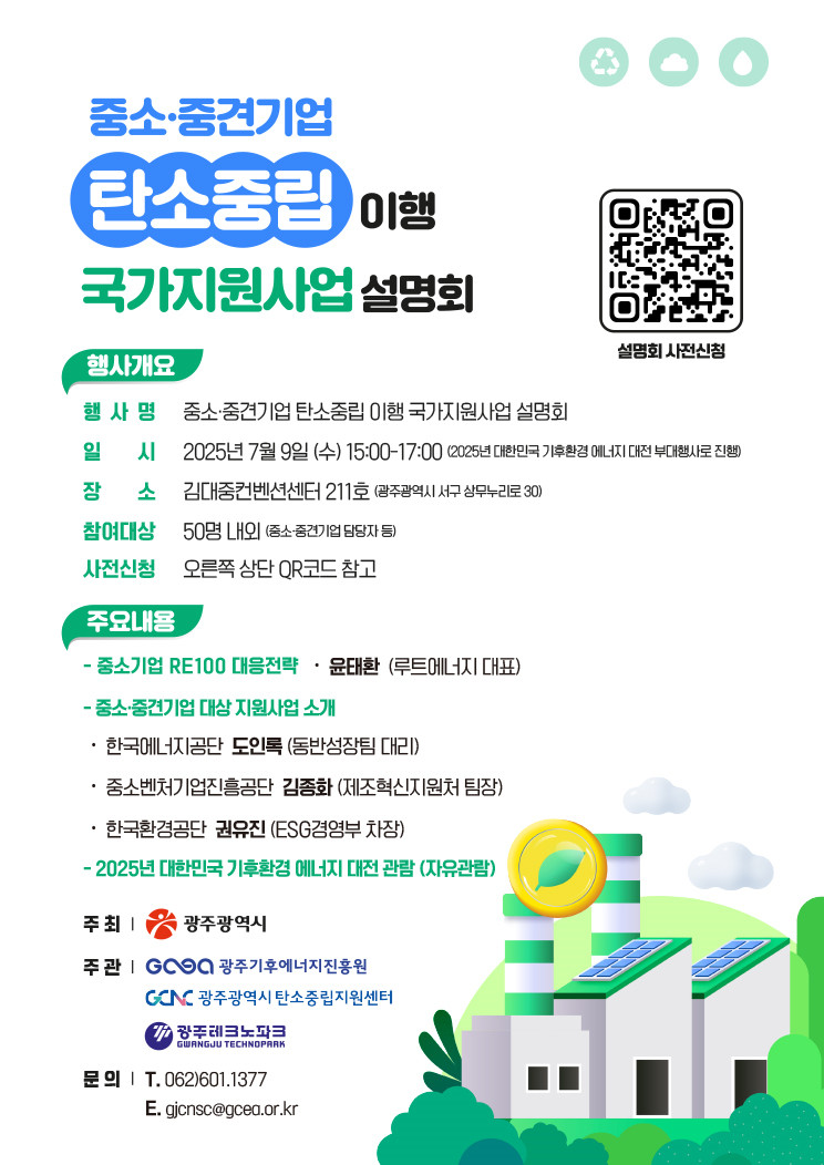 한편 이번 설명회는 ‘2025 대한민국 기후환경에너지 대전’의 부대행사로 열리며, 지역 내 기업 및 업무 담당자들은 누구나 참여할 수 있다.