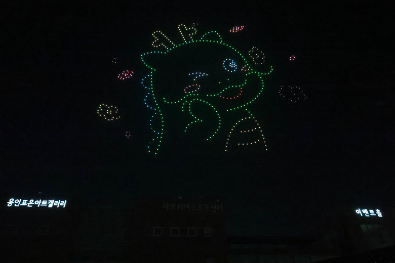 - 밤 하늘 수 놓은 500대의 드론이 선보인 라이팅쇼와 용인포은아트홀 미디어 파사드 시연도 눈길 끌어 -