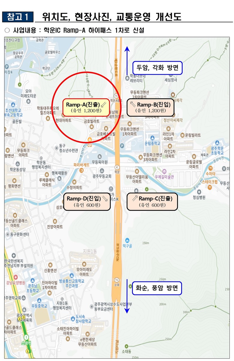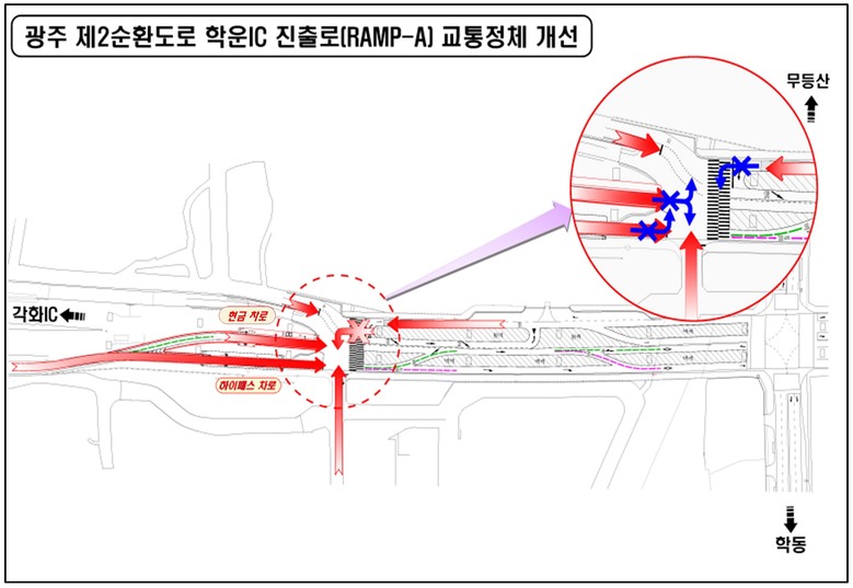 광주광역시(시장 강기정)는 제2순환도로 학운IC 진출로(Ramp-A, 두암·각화→학운교차로 방면)에 1개 차로를 추가 신설해 하이패스 시스템을 도입했다. 정식 개통은 오는 3월31일 오후 2시다.