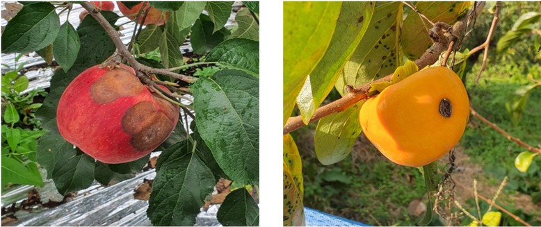| ▲ 과수 탄저병 피해증상(사과, 단감) |