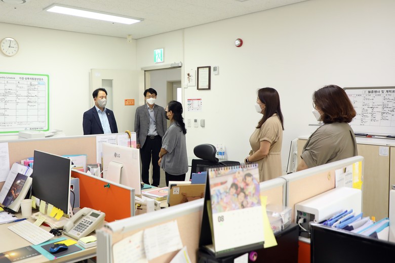 [세종 세계타임즈=이채봉 기자] 세종특별자치시의회 상병헌 의장은 22일 종촌종합복지센터를 격려 방문한 자리에서 입주 시설 및 기관 현황을 청취하고 민간 위탁 사회복지시설 관계자를 만나 운영상 애로사항 등을 논의했다.
