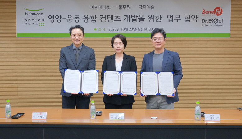 [세계타임즈 = 이현진 기자] 풀무원은 지난 23일 서울 수서 풀무원 본사서 마이베네핏, 닥터엑솔과 ‘헬스케어 융합 콘텐츠 제작 및 통합 플랫폼 구축을 위한 업무협약(MOU)’을 체결했다고 24일 밝혔다.