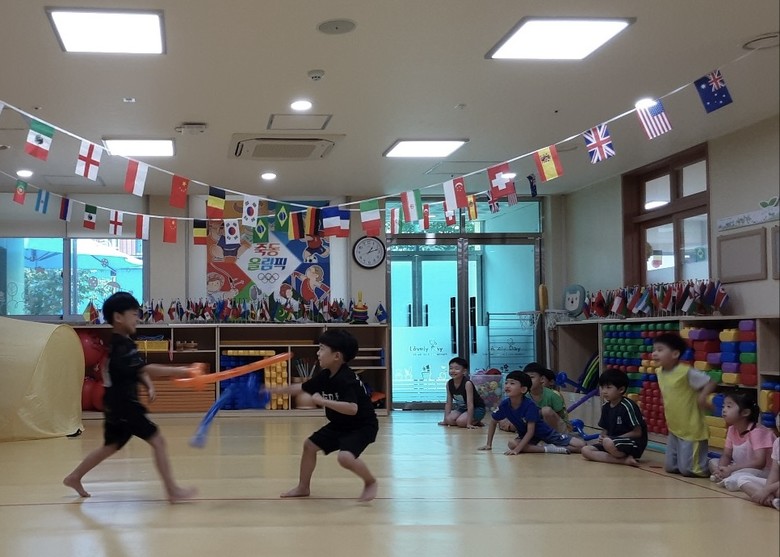 또한, 이번 파리올림픽 기간을 맞이하여 여름방학 동안 올림픽 놀이를 진행하였다. 오륜기의 의미 알아보기, 올림픽 종목, 펜싱놀이, 올림픽 메달 만들기 등 유아들의 흥미를 놀이로 연결하여 의미있는 방과후과정의 시간을 보냈다.