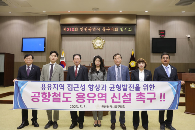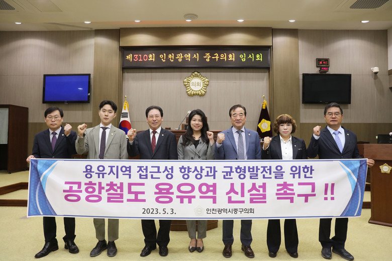 이에 중구의회는 “용유지역 주민 및 관광객의 접근성 향상과 균형 발전의 토대를 마련하기 위하여 공항철도의 시점을 용유까지 연장하여 용유역 신설이 반드시 추진될 수 있도록 강력히 촉구한다.”라는 입장을 대외적으로 표명했다.